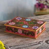 Floral Reverse-Painted Glass Decorative Box in Pink 'Margarita Garden in Pink' Item ID: 2671695398
