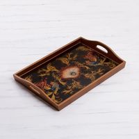 Floral Reverse Painted Glass Tray from Peru 'Nightfall Flowers' Item ID: 2671691202