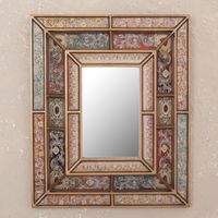 Floral Reverse-Painted Glass Wall Mirror from Peru 'Colonial Charm' Item ID: 2671695308