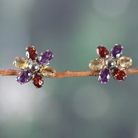 Floral Rhodium-Plated 6-Carat Multi-Gemstone Button Earrings 'Dream Petals' Item ID: 2671782147