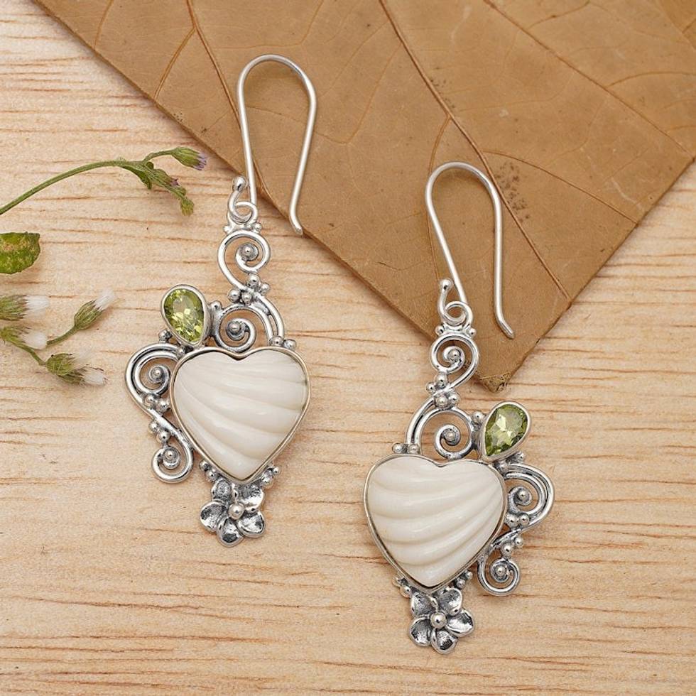 Floral Romantic Heart-Shaped Natural Peridot Dangle Earrings 'Lucky Passion' Item ID: 2671671199