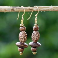 Floral Sese Wood Beaded Dangle Earrings from Ghana 'Wooden Garden' Item ID: 2671804999