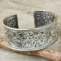 Floral Silver Cuff Bracelet 'Renewal' Item ID: 2669931387