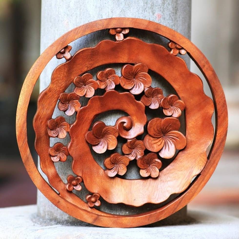 Floral Spiral Suar Wood Relief Panel from Bali 'Jepun Spiral' Item ID: 2671737121
