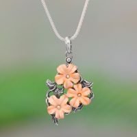 Floral Sterling Silver and Bone Pendant Necklace from Java 'Plumeria Trio' Item ID: 2671482368