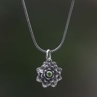 Floral Sterling Silver and Peridot Pendant Necklace 'Sacred Green Lotus' Item ID: 2671700771