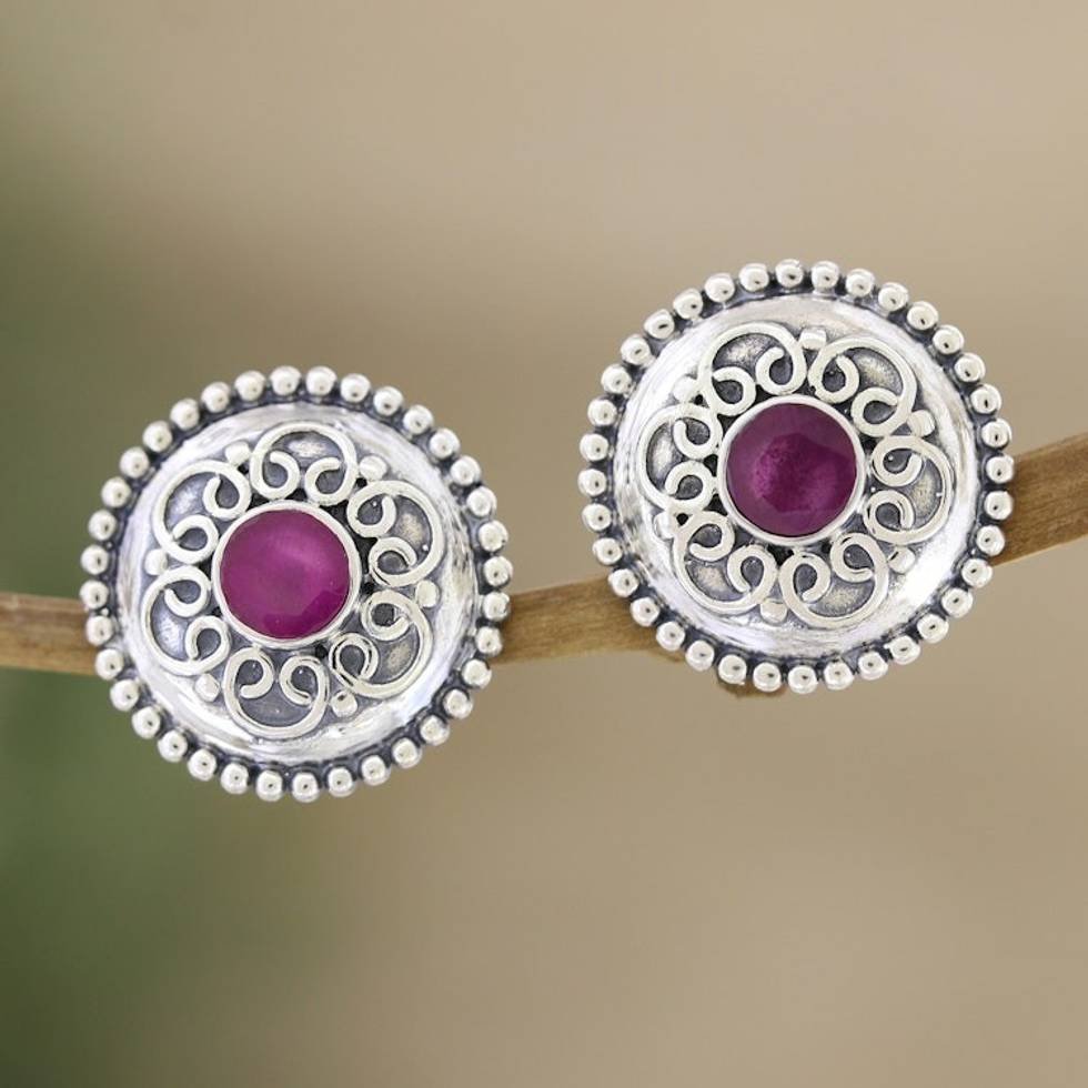 Floral Sterling Silver Button Earrings with Cubic Zirconia 'Intense Blooming' Item ID: 2671786878
