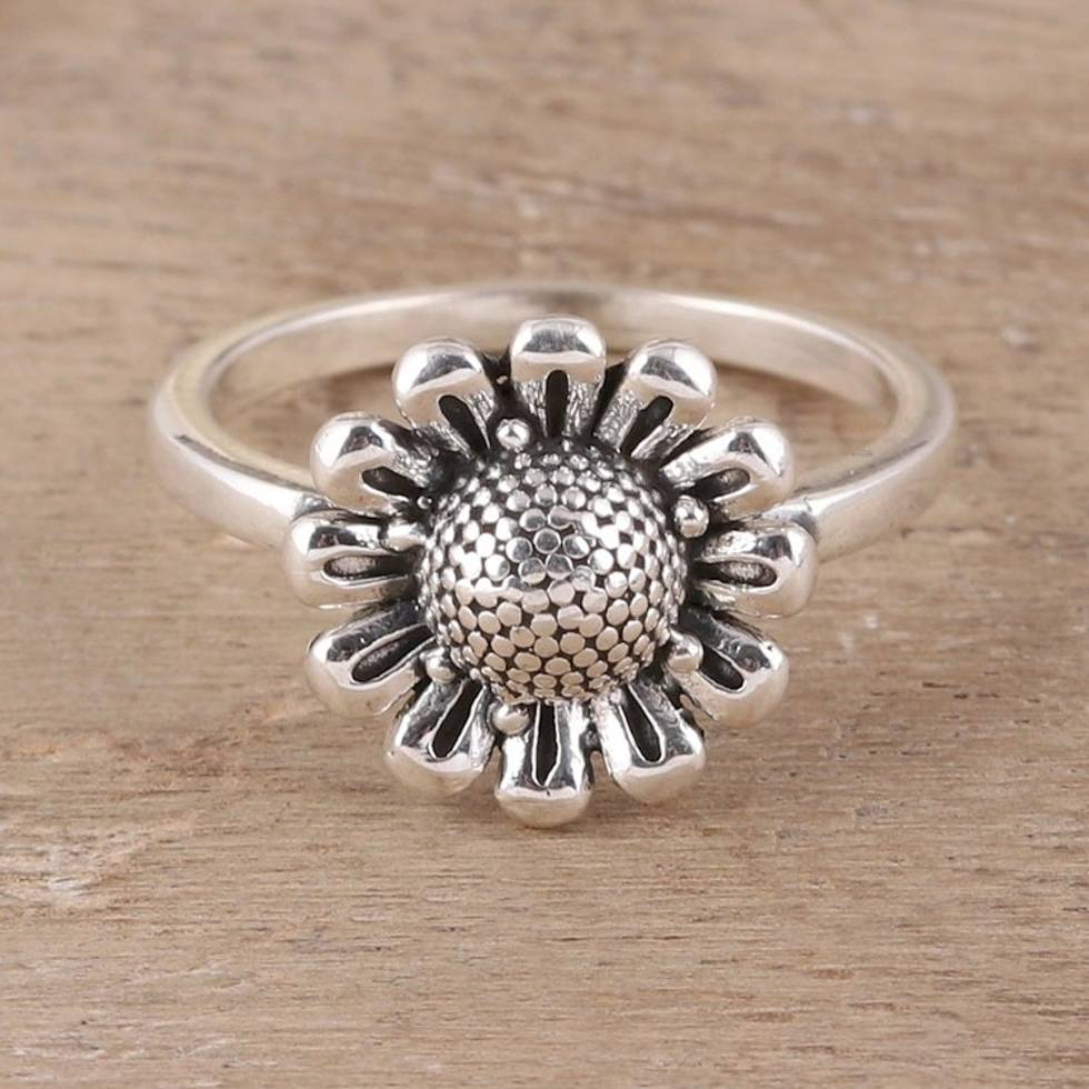 Floral Sterling Silver Cocktail Ring Crafted in India 'Blissful Allure' Item ID: 2671792904