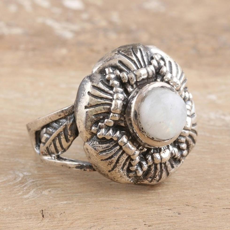 Floral Sterling Silver Cocktail Ring with Rainbow Moonstone 'Harmonious Queen' Item ID: 2671786510