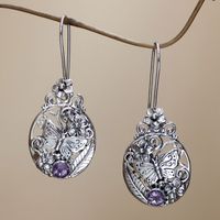 Floral Sterling Silver Dangle Earrings 'Butterflies and Frangipani' Item ID: 2669922777