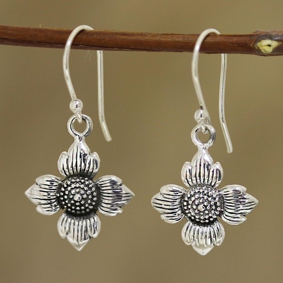 Floral Sterling Silver Dangle Earrings from Indai 'Floral Eternity' Item ID: 2671789658