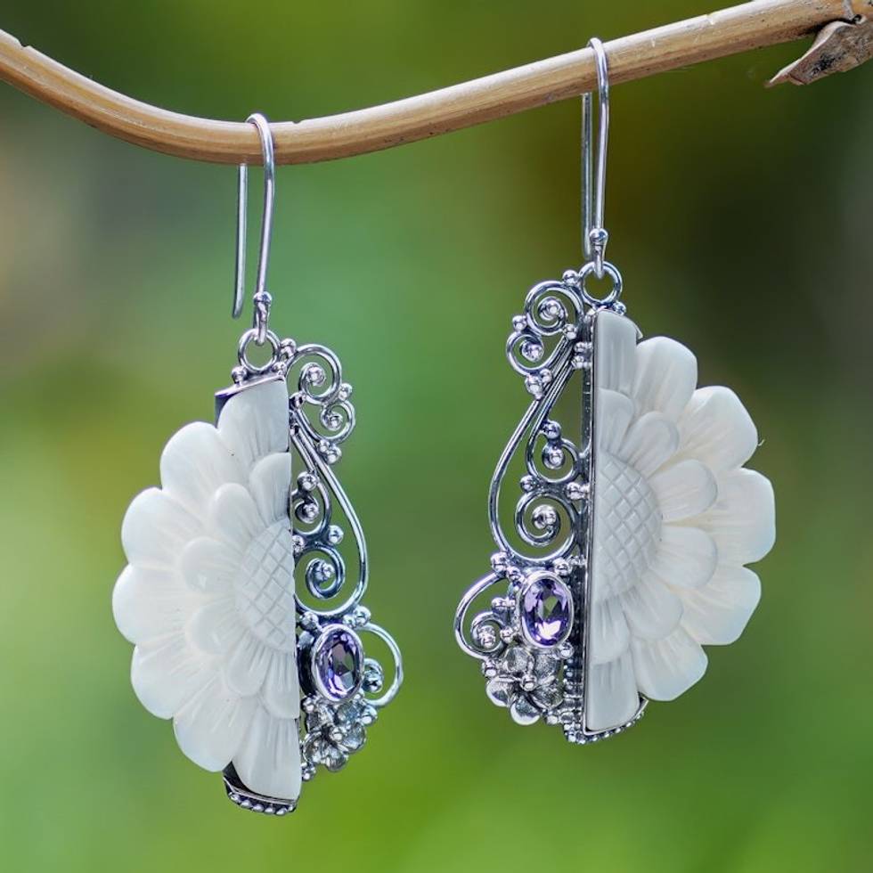 Floral Sterling Silver Dangle Earrings with Amethyst Gems 'Primaveral Glamour' Item ID: 2671763164
