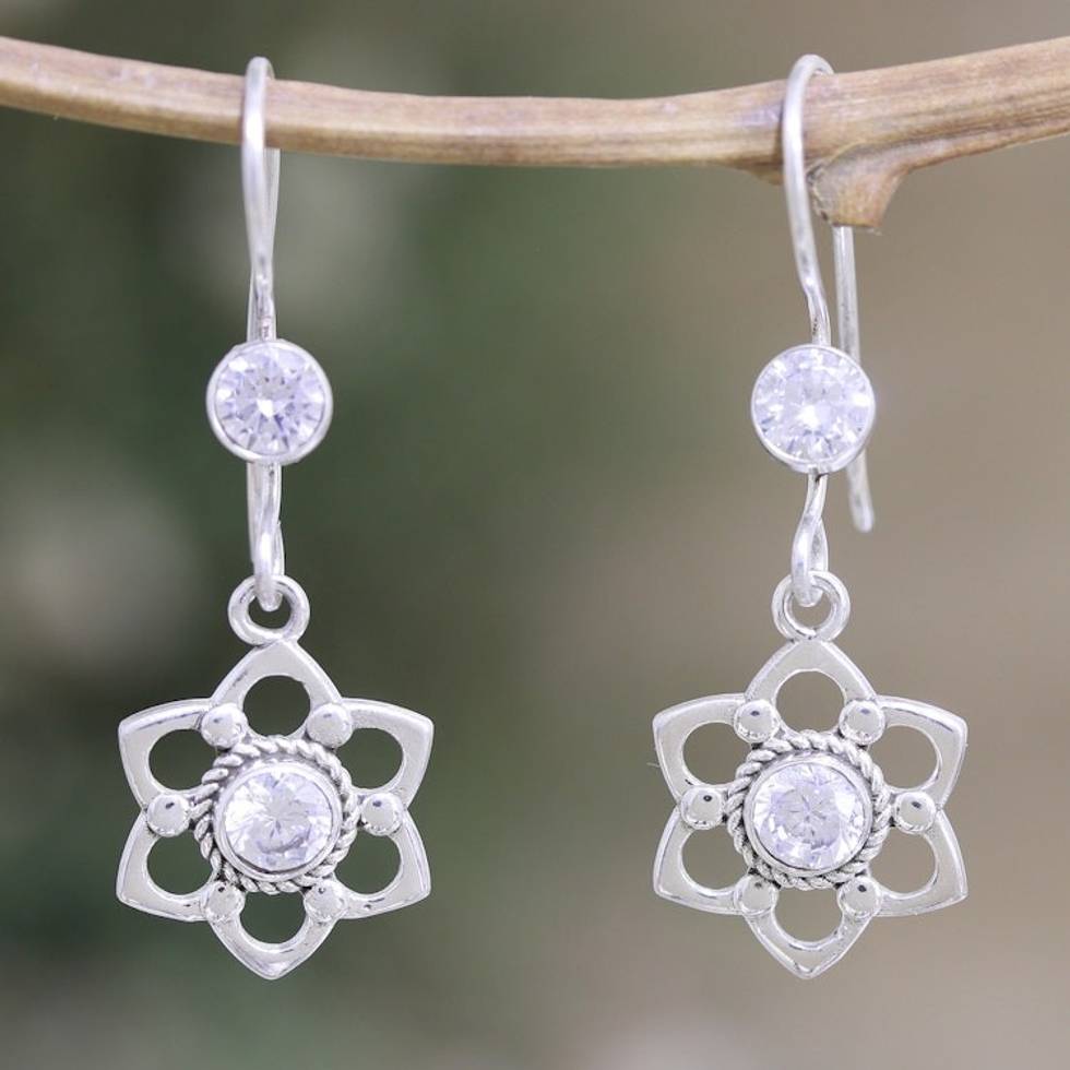 Floral Sterling Silver Dangle Earrings with Cubic Zirconia 'Heaven Flowers' Item ID: 2671625680