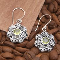 Floral Sterling Silver Dangle Earrings with Peridot Jewels 'Offerings to Fortune' Item ID: 2671821497