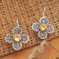 Floral Sterling Silver Drop Earrings with Citrine Jewels 'Spring of Joy' Item ID: 2671764110