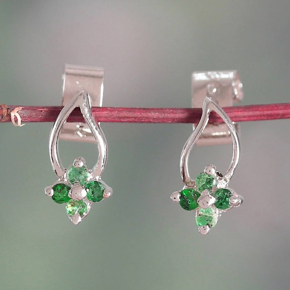 Floral Sterling Silver Drop Earrings with Emerald Gemstones 'Spring of Glamour' Item ID: 2671781262