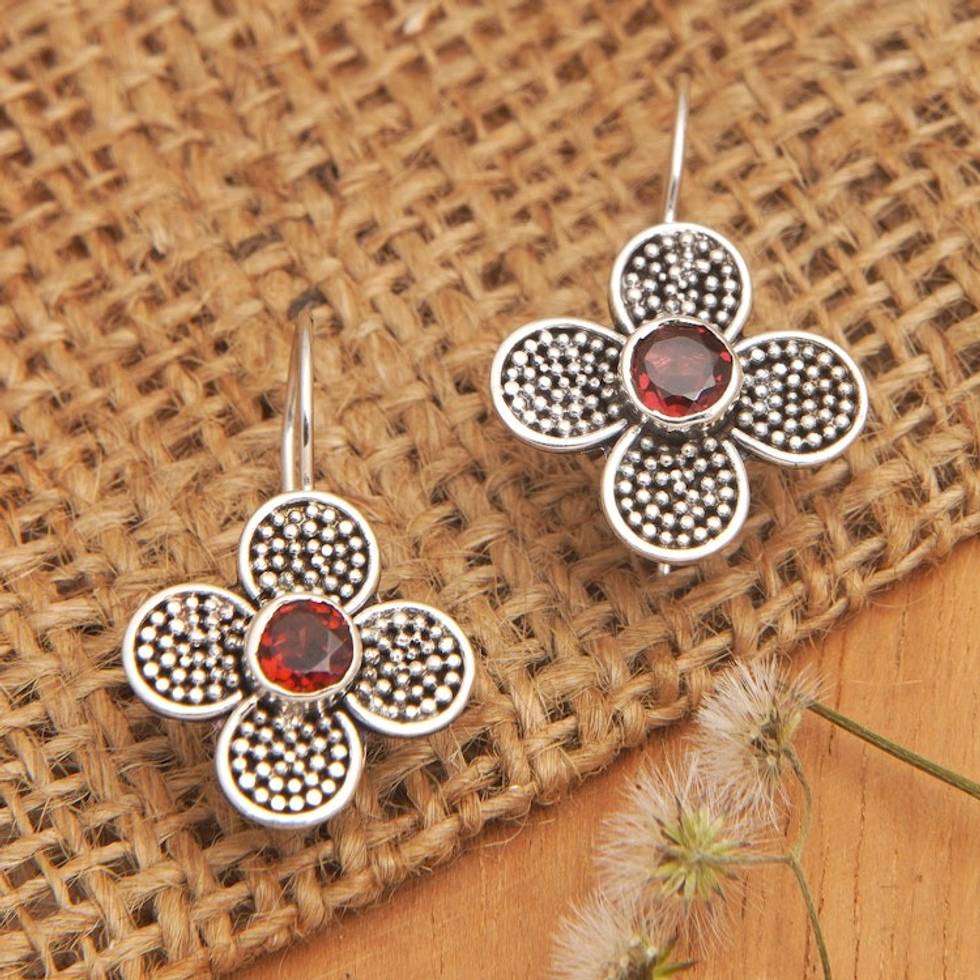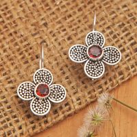 Floral Sterling Silver Drop Earrings with Garnet Jewels 'Spring of Perseverance' Item ID: 2671667915