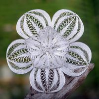 Floral Sterling Silver Filigree Brooch Pin 'Peacock's Plumes' Item ID: 2671699488
