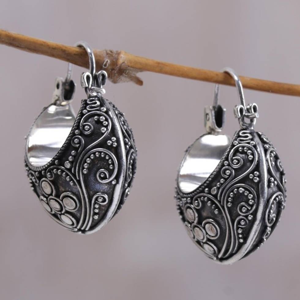 Floral Sterling Silver Hoop Earrings 'Bali Paradise' Item ID: 2671479763