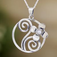Floral Sterling Silver Pendant Necklace with Cultured Pearl 'Floral Style' Item ID: 2671787189