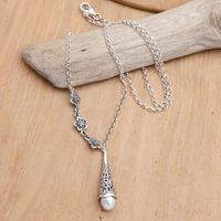 Floral Sterling Silver Pendant Necklace with Grey Pearl 'Floral Lantern' Item ID: 2671763005