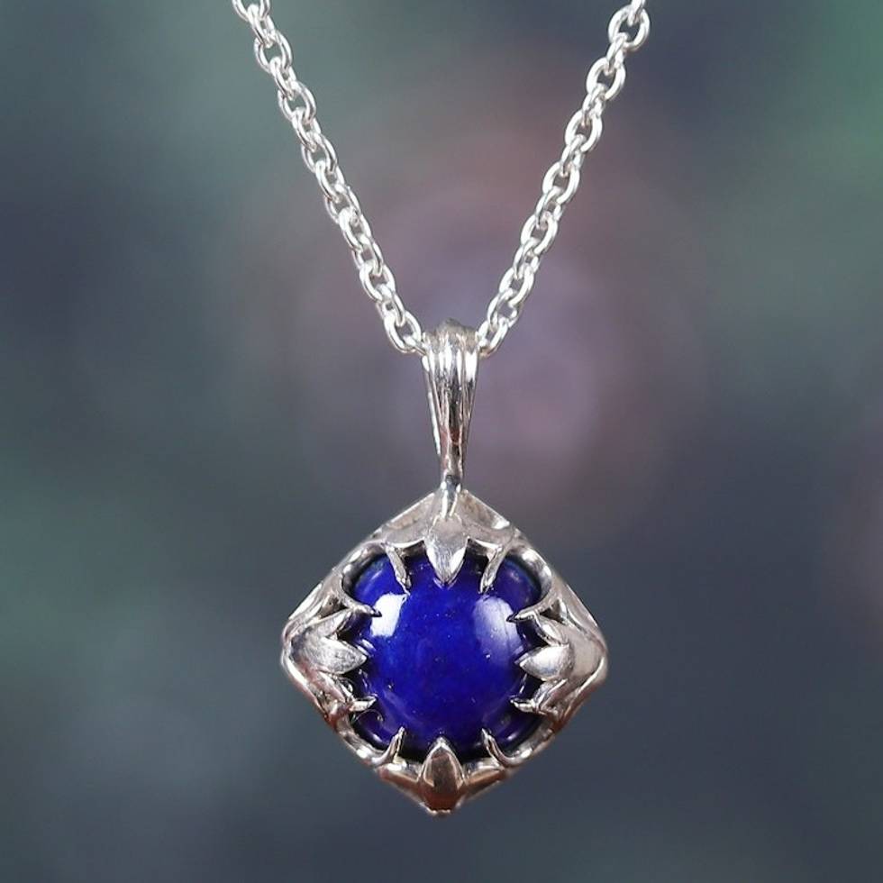Floral Sterling Silver Pendant Necklace with Lapis Lazuli 'Garden Blue' Item ID: 2671623891