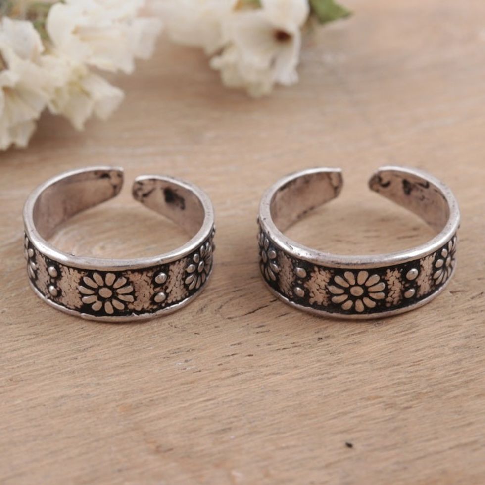 Floral Sterling Silver Toe Rings from India Pair 'Joyful Blossoms' Item ID: 2669923776