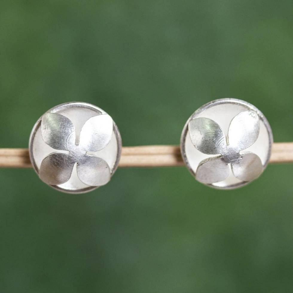 Floral Stud Earrings in Sterling Silver 'Flower Finesse' Item ID: 2669931380