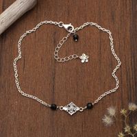 Floral-Themed Black Onyx Sterling Silver Pendant Anklet 'Black Balinese Plumeria' Item ID: 2676657322