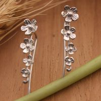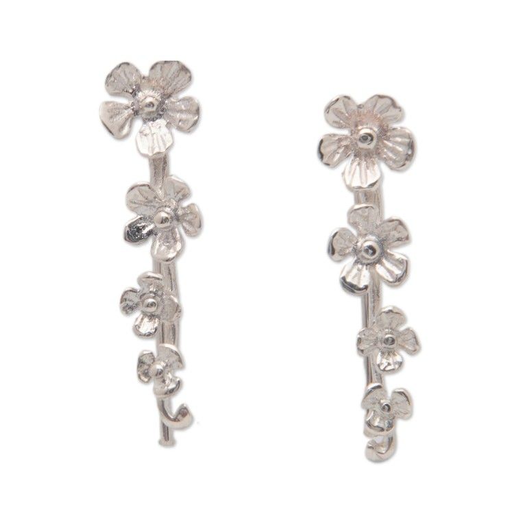 Floral-Themed Sterling Silver Drop Earrings from Bali 'Blossom Garland' Item ID: 2671764880