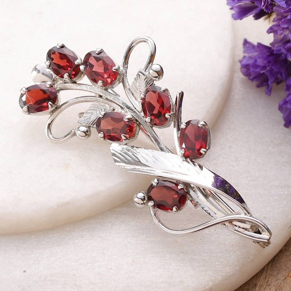 Floral Three-Carat Garnet and Sterling Silver Brooch Pin 'Passionate Bouquet' Item ID: 2671783030