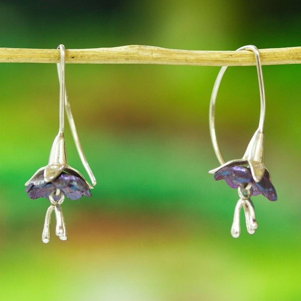 Floral Titanium Plated Sterling Silver Drop Earrings 'Sleepy Flowers' Item ID: 2669932245