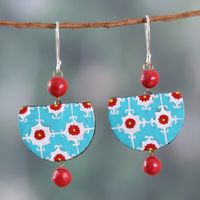 Floral Turquoise and Red Ceramic Dangle Earrings from India 'Moroccan Expression' Item ID: 2671783165