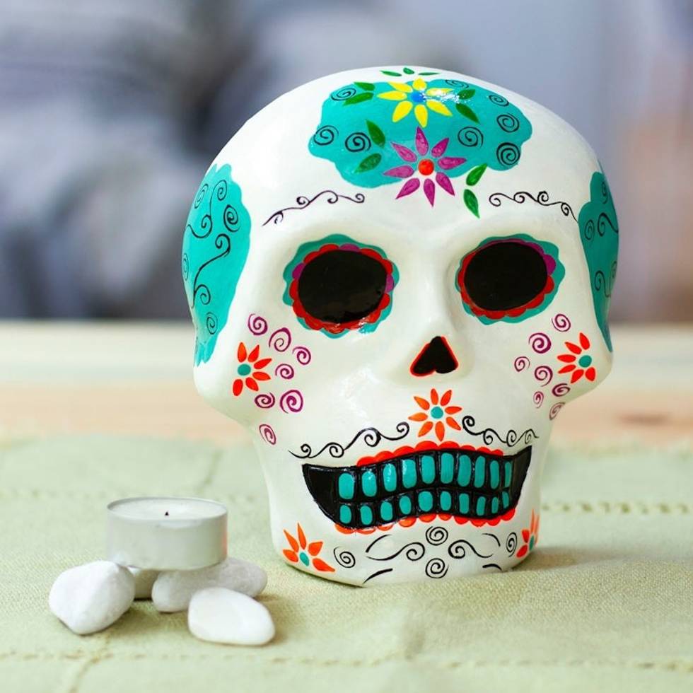 Floral Turquoise Day of the Dead Skull Ceramic Wall Art 'Face of the Calm Underworld' Item ID: 2671807366