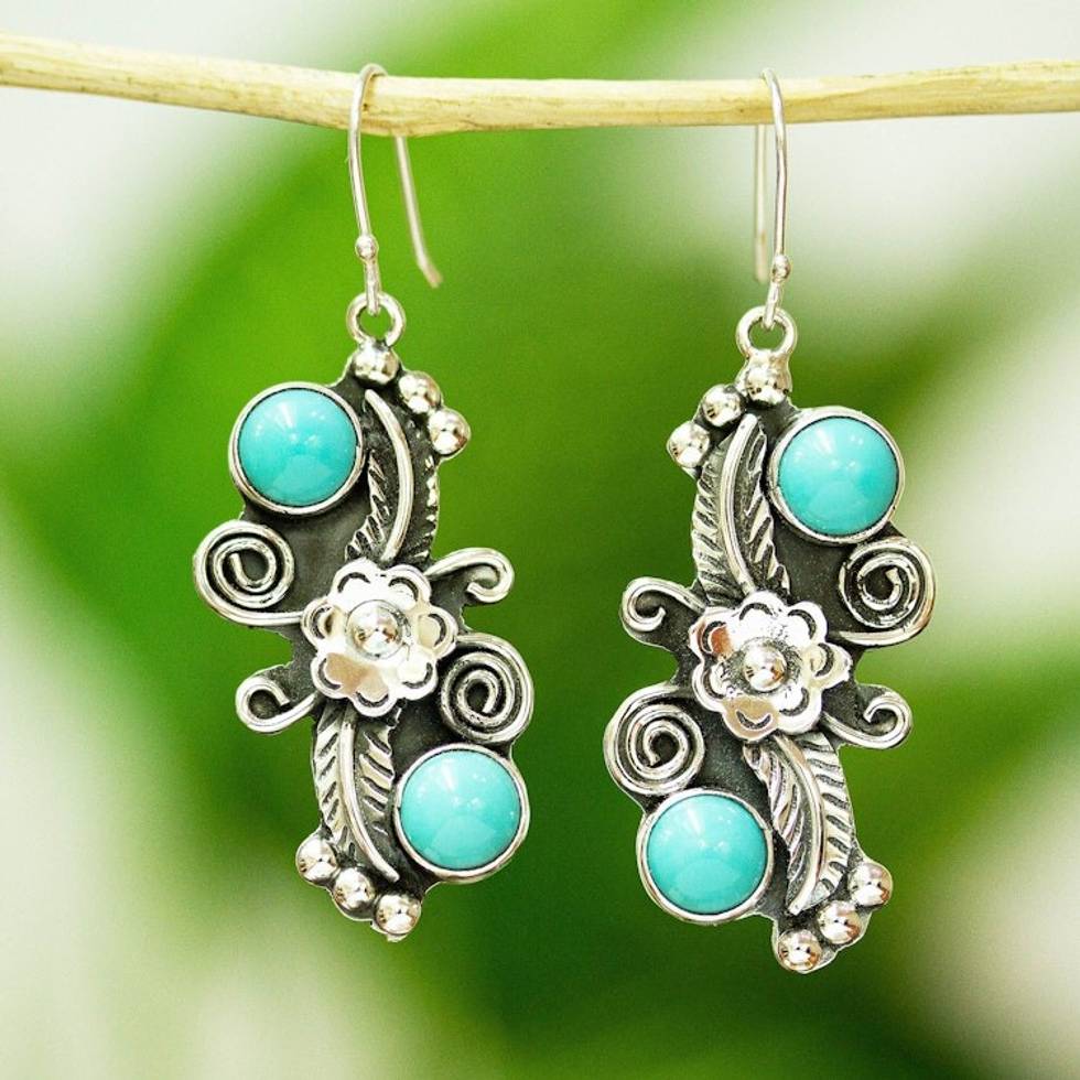Floral Turquoise Earrings 'Traditional Blooms' Item ID: 2669927161