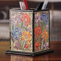 Floral Weeping Willow Wood and Papier Mache Pen Holder 'Blooming Conquest' Item ID: 2676664956
