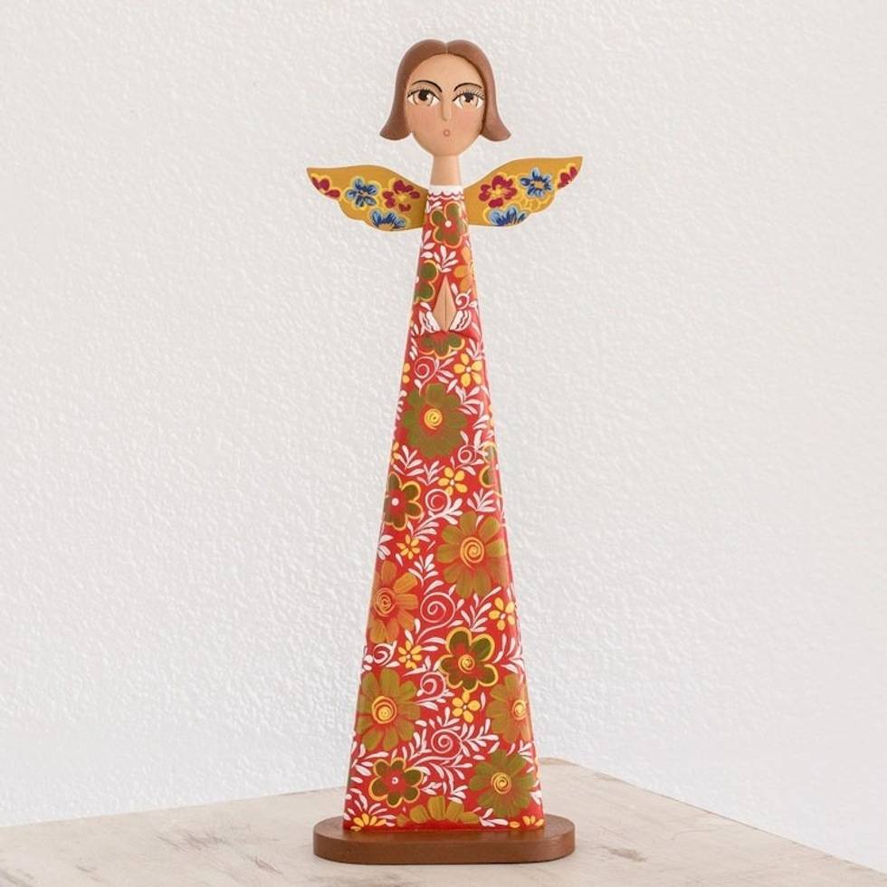 Floral Wood Angel Decorative Accent from Nicaragua 'Garden Angel' Item ID: 2671776728