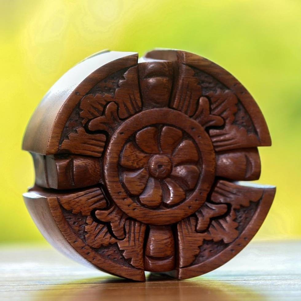 Floral Wood Puzzle Box Crafted in Bali 'Floral Secret' Item ID: 2671735381