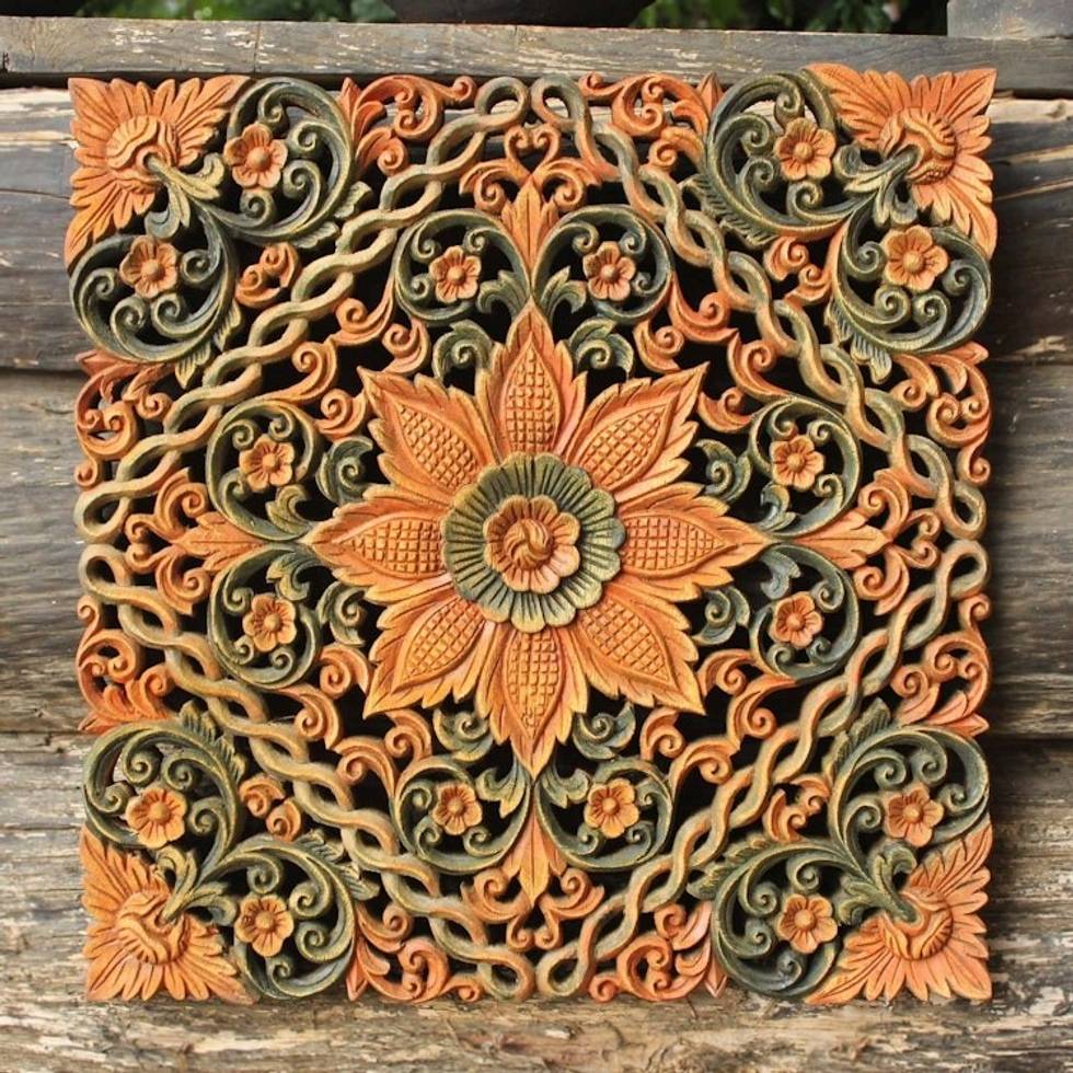 Floral Wood Relief Panel 'Floral Star' Item ID: 2671802656