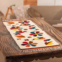 Flower and Bird-Themed Handwoven Wool Blend Table Runner 'Andean Freedom' Item ID: 2671698060