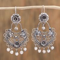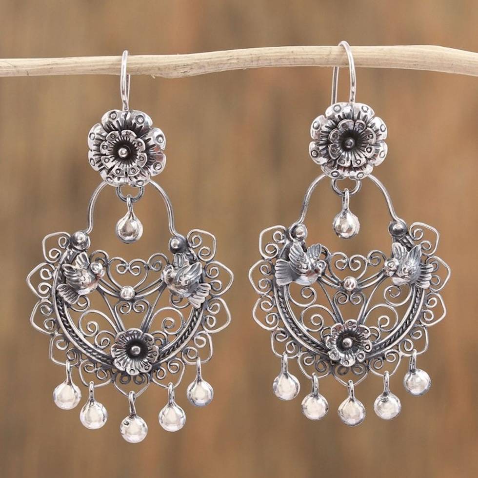 Flower and Bird-Themed Sterling Silver Earrings from Mexico 'Love and Hope' Item ID: 2671639068