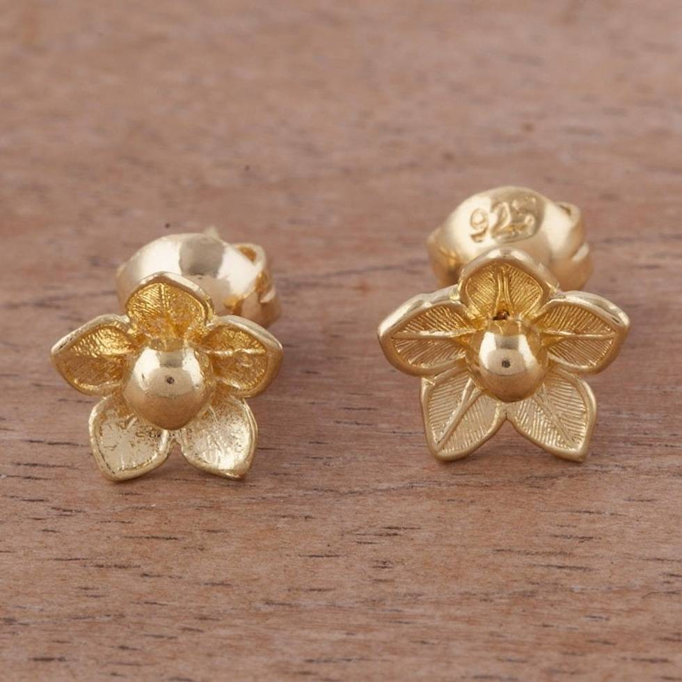 Flower-Shaped 18k Gold Plated Stud Earrings from Peru 'Glistening Petals' Item ID: 2671819660