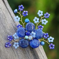 Flower-Shaped Dark Blue Cultured Pearl and Quartz Brooch Pin 'Petals of Imagination' Item ID: 2671646706