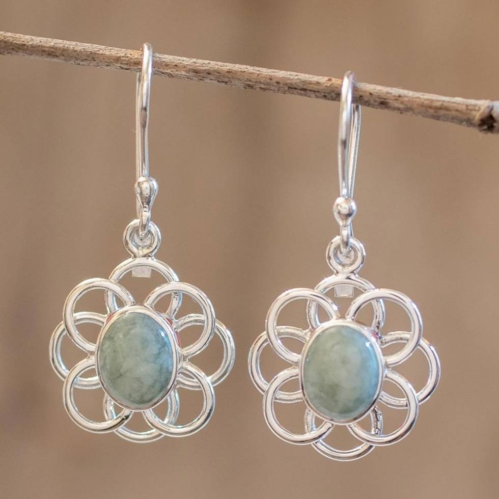 Flower Shaped Jade Dangle Earrings 'Mixco Flora in Light Green' Item ID: 2671777091