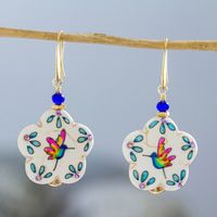 Flower-Shaped Marble Hummingbird Earrings 'Hummingbird Flower' Item ID: 2669927172