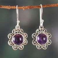 Flower-Shaped Sterling Silver and Amethyst Dangle Earrings 'Wisdom in Petals' Item ID: 2671622255