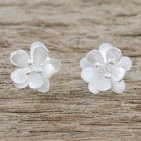 Flower-Shaped Sterling Silver Button Earrings from Thailand 'Fantastic Blossoms' Item ID: 2669927677
