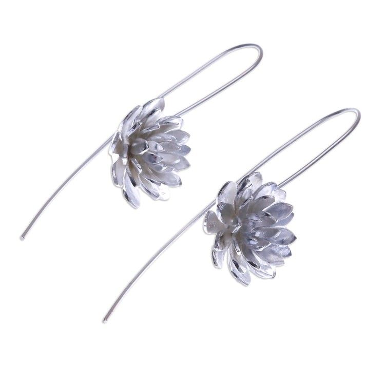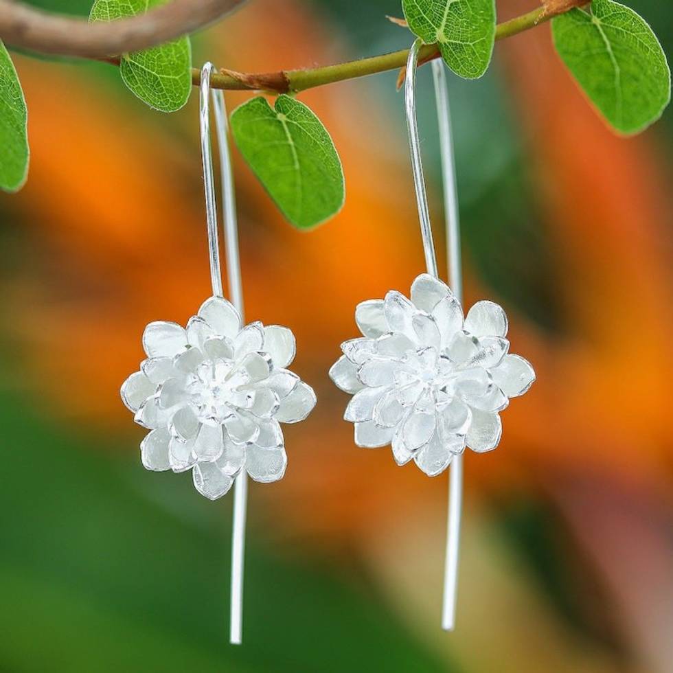 Flower-Shaped Sterling Silver Drop Earrings from Thailand 'Chic Blossom' Item ID: 2671797016