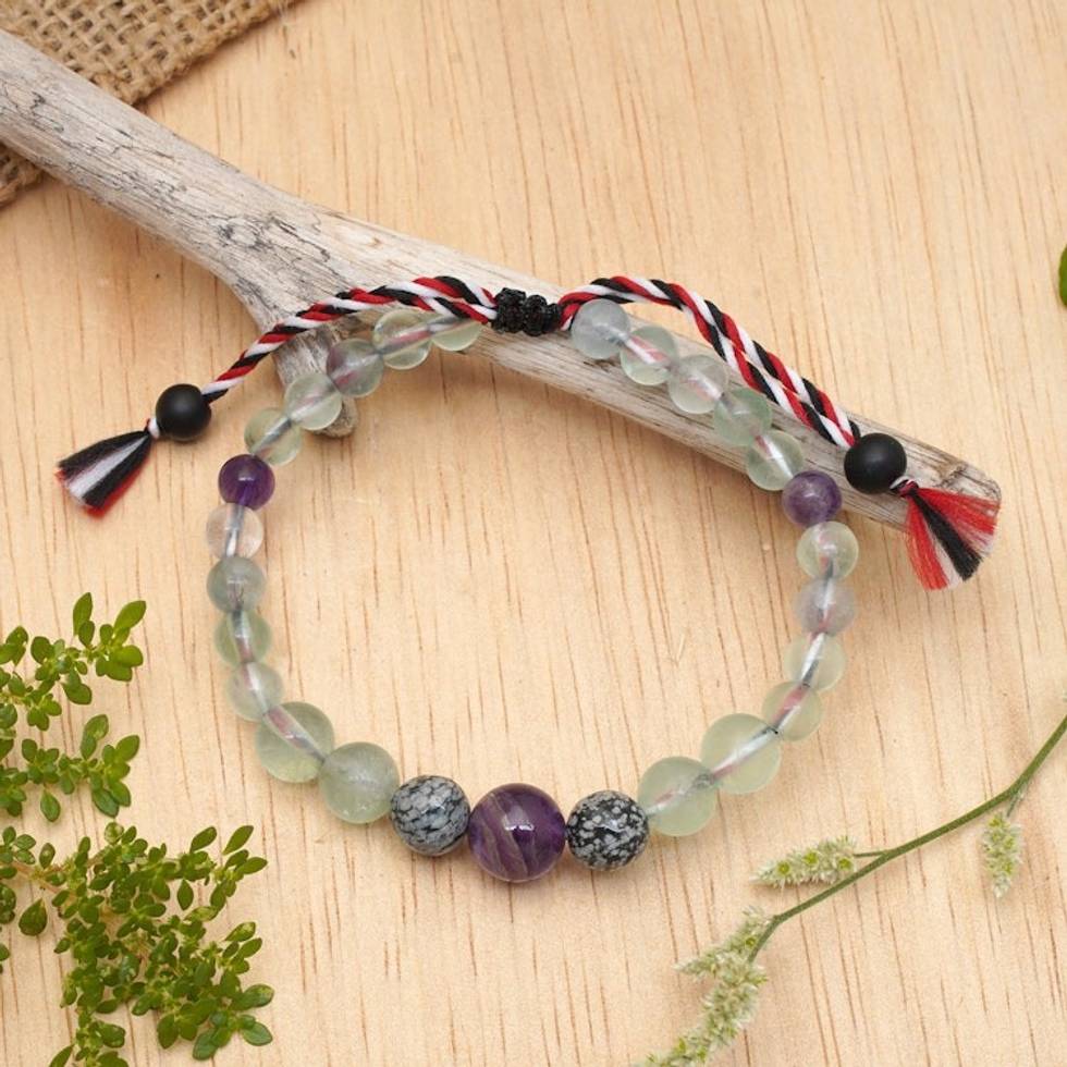 Fluorite Obsidian Amethyst Onyx Yoga Tridatu Men's Bracelet 'Tridatu Force' Item ID: 2671765184