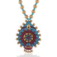 "Terracotta jewelry is crafted with clay which is procured from the river bed. After the piece is ready, it is baked in the oven and then hand-painted with vibrant colors and finally varnished with toxic-free lacquer.